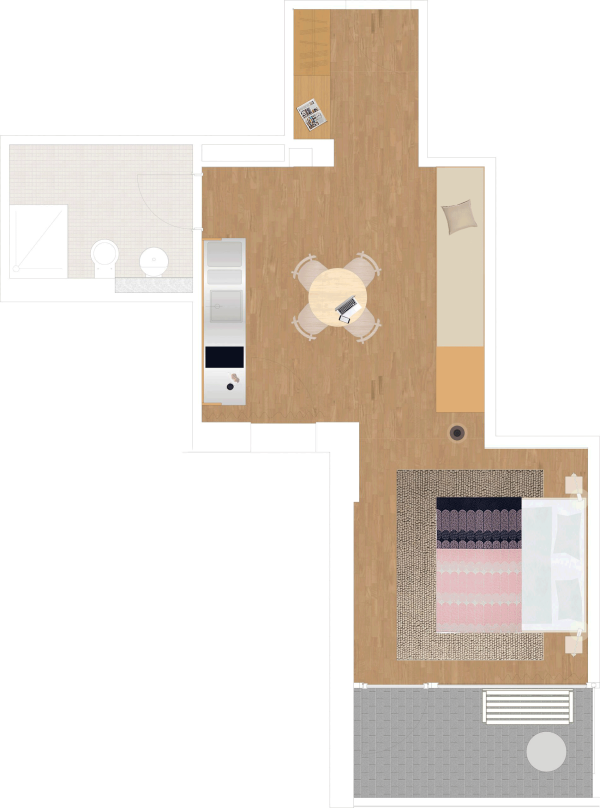 Private balcony Living area with sofa-bed Window opens onto historic downtown Munich